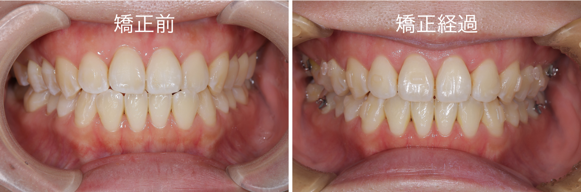 治療途中にはなりますが大分歯並びも整い、全ての前歯がしっかりと見えるようになってきました