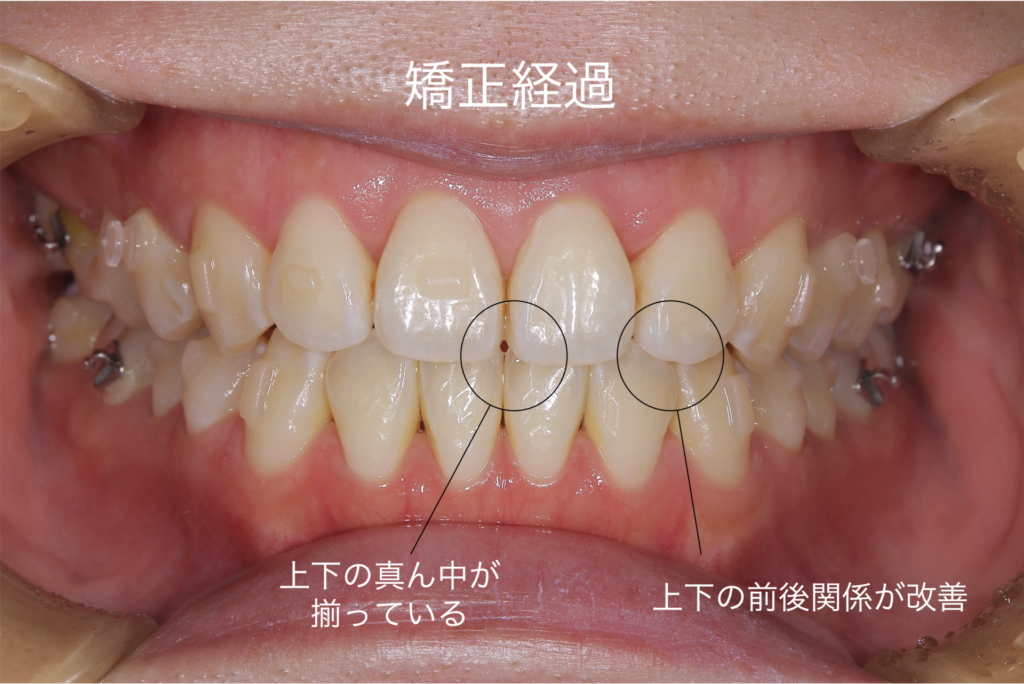 また、上下の真ん中が揃っていないことも同時に改善することを目標として治療を行いました