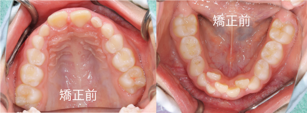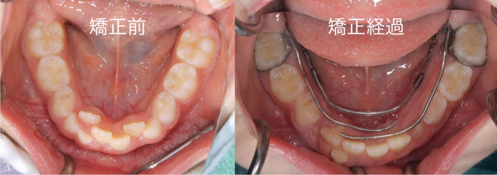 これから下顎の成長がありますが現状のガタつきは中程度以上と判断し、自然な成長では改善しない可能性が高いことを説明させていただいたところ、患者様は矯正治療(1期治療)を行い改善していかれることを希望されました