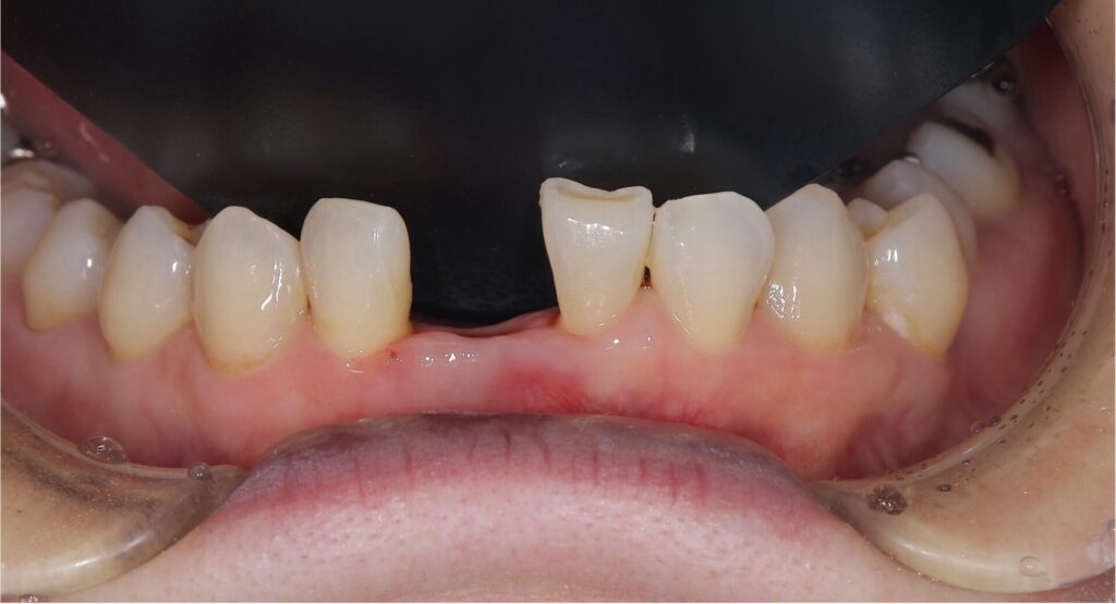 今回の患者様は右下の前歯(向かって真ん中左の歯)が歯周病が進行してしまい抜歯と判断いたしました