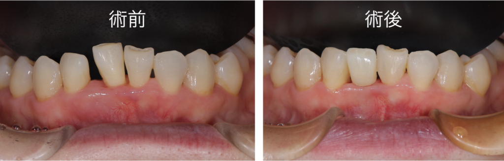 抜歯を行うだけだと歯茎の退縮が生じてしまうため、歯茎が退縮しないように考慮しながら抜歯を行いました
